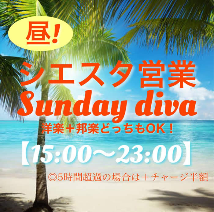 昼からdiva如何ですか〜? ◎前半後半またいでのご参加OK ◎5時間超過の場合は+チャージ半額